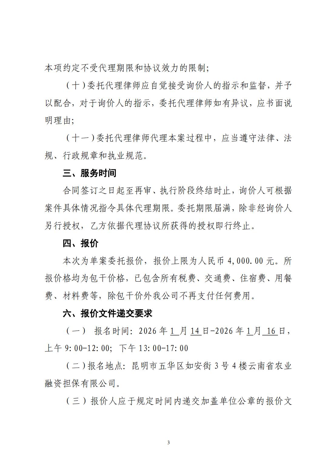 云南省農(nóng)業(yè)融資擔保有限公司詢價公告