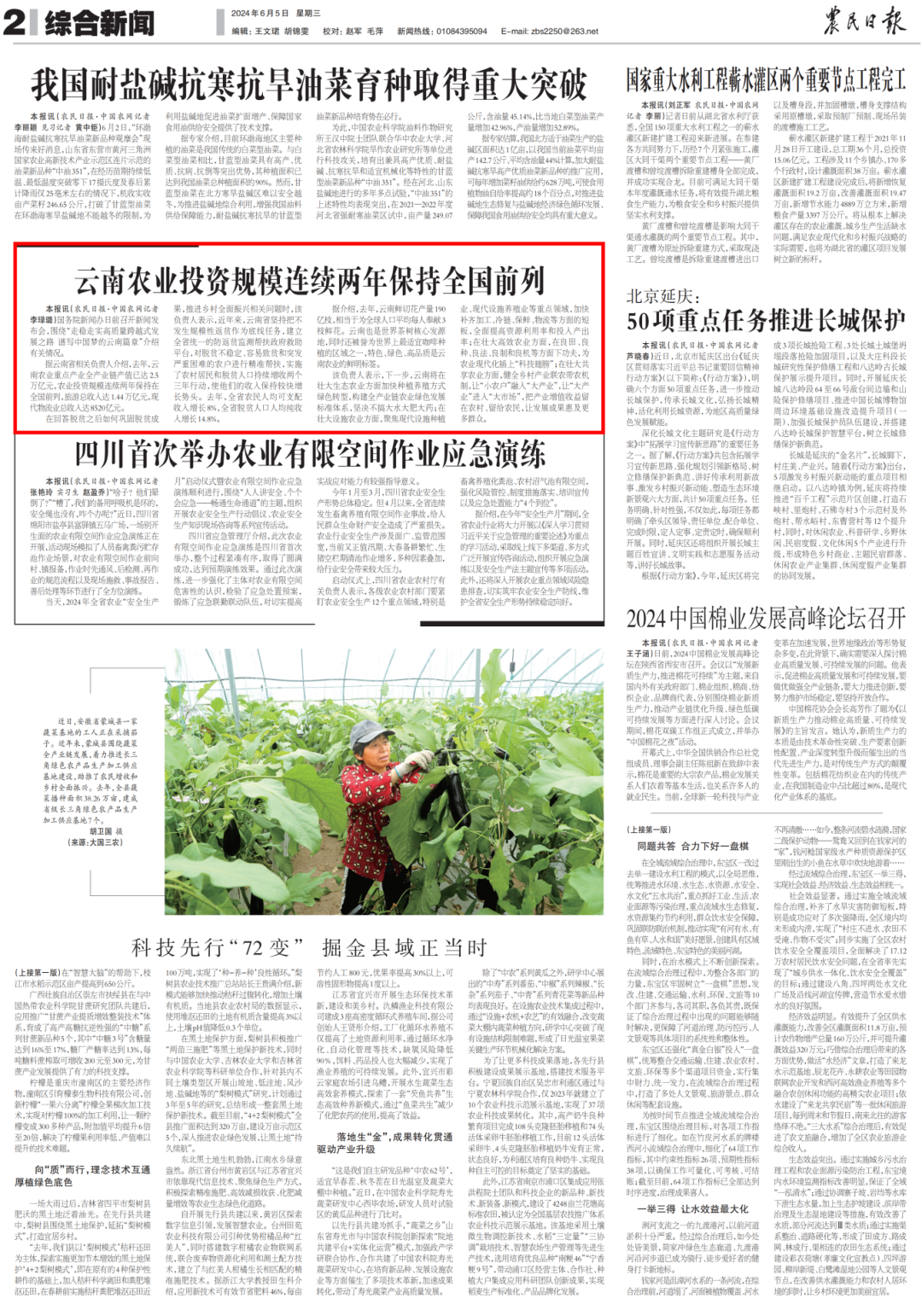 農(nóng)業(yè)投資規(guī)模連續(xù)兩年保持在全國(guó)前列