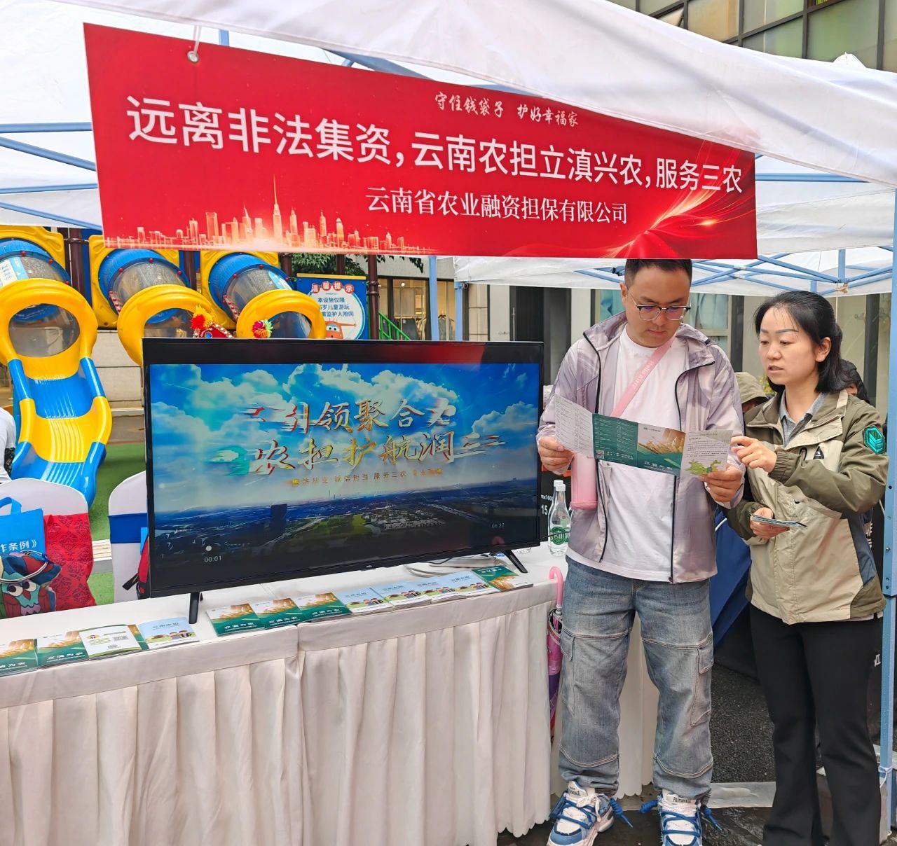 省農(nóng)擔(dān)公司設(shè)立專門咨詢臺(tái),通過發(fā)放業(yè)務(wù)宣傳折頁,播放公司宣傳片,積極為參與群眾講解農(nóng)業(yè)融資擔(dān)保政策。用通俗易懂的語言,結(jié)合“虛假農(nóng)業(yè)項(xiàng)目融資”和“虛假擔(dān)?!钡鹊湫桶咐?,為老百姓深度剖析非法集資分子利用群眾對(duì)政策不熟悉、渴望低成本融資等心理實(shí)施詐騙的套路;并現(xiàn)場(chǎng)提醒群眾:“選擇農(nóng)業(yè)擔(dān)保服務(wù),認(rèn)準(zhǔn)云南農(nóng)擔(dān)官方渠道”,引導(dǎo)群眾通過正規(guī)擔(dān)保機(jī)構(gòu)獲取金融服務(wù),切實(shí)保護(hù)自身合法權(quán)益。