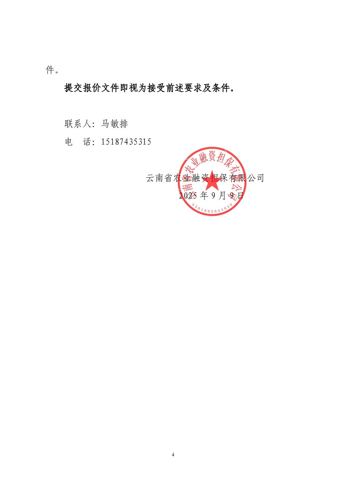 云南省農(nóng)業(yè)融資擔保有限公司詢價公告