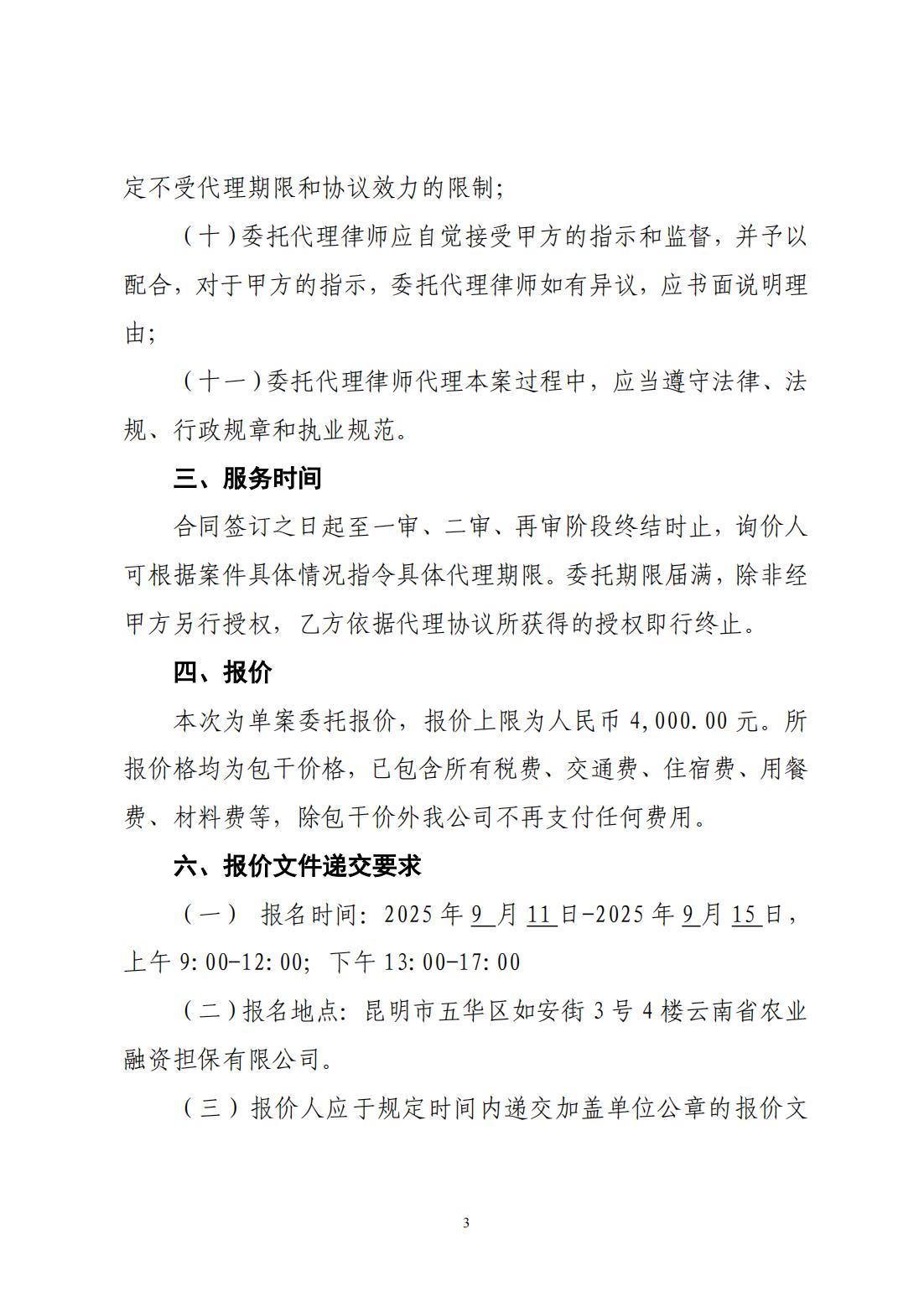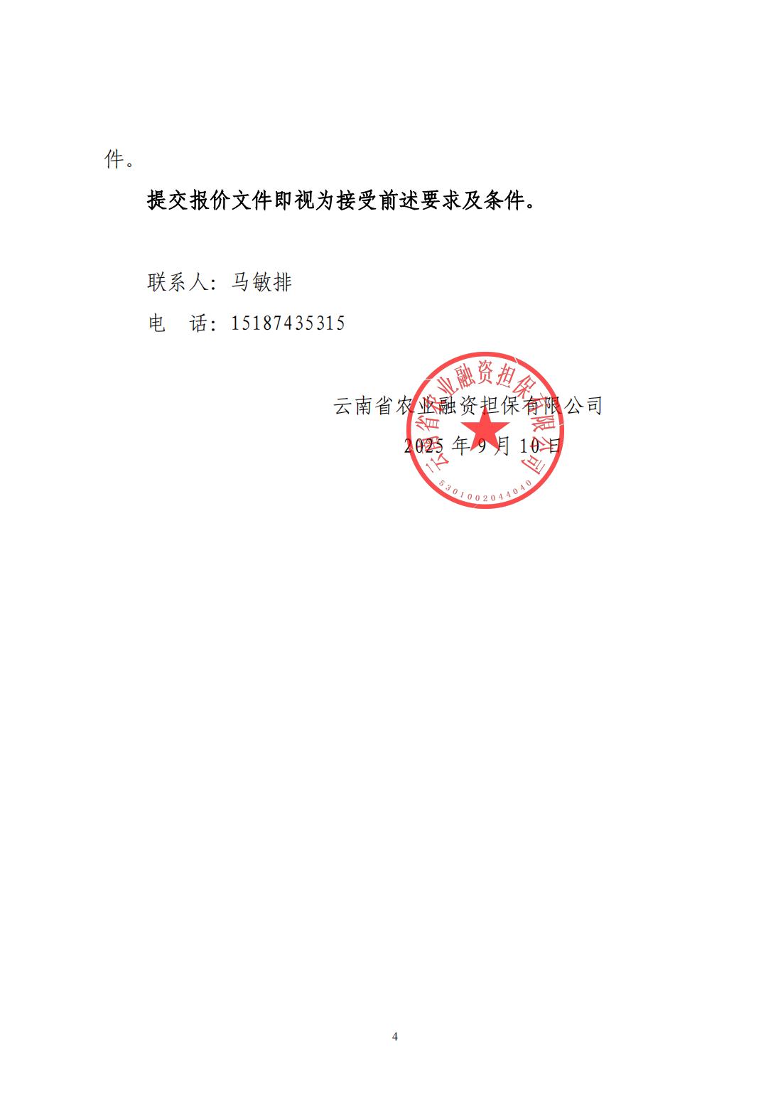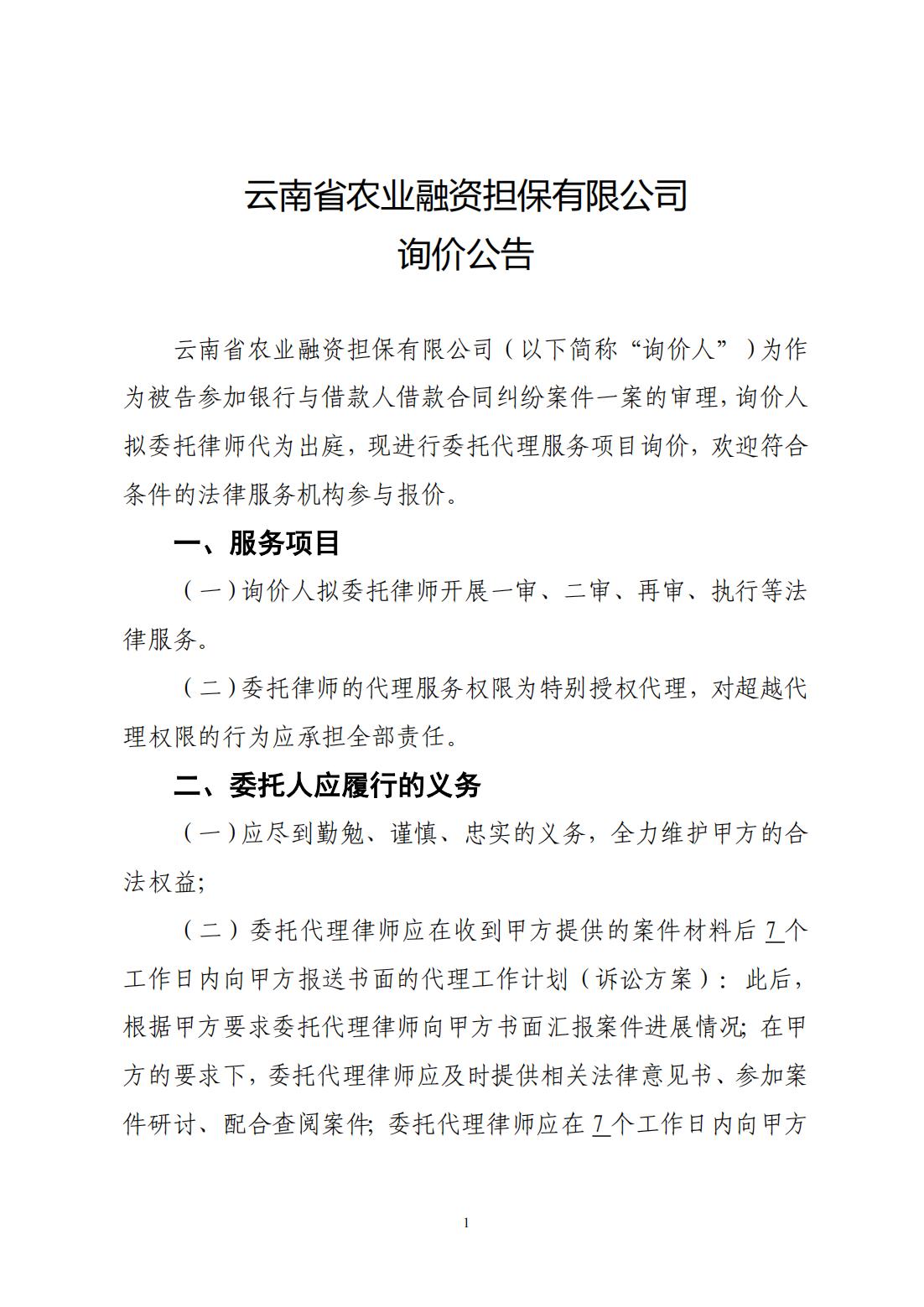云南省農(nóng)業(yè)融資擔(dān)保有限公司詢價公告