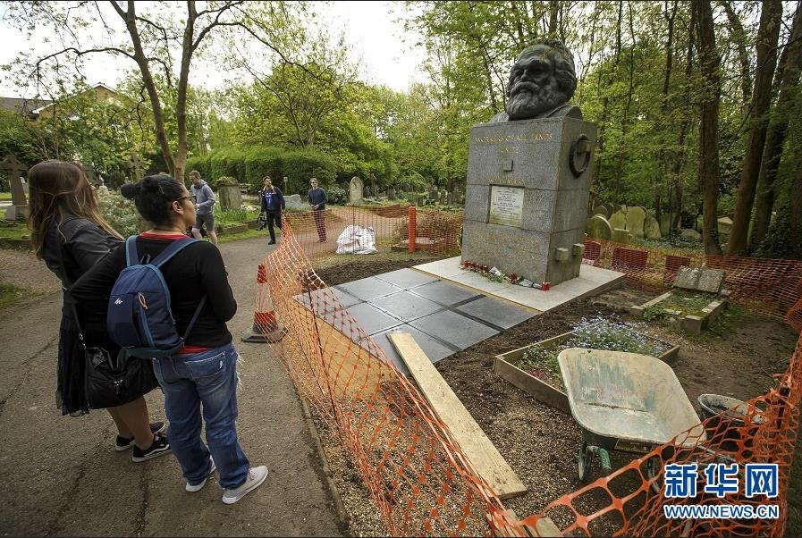 歷史長河奔流不息,真理之光穿越時空。1818年5月5日,德國小城特里爾,一代偉人馬克思誕生。200年后,世界東方。高擎馬克思主義的精神火炬,在習近平新時代中國特色社會主義思想指引下,中國共產黨正領導億萬人民書寫人類發(fā)展史上新的奇跡。這是2018年5月3日,在英國倫敦北部海格特公墓,人們來到正在進行維修的馬克思墓前參觀。新華社發(fā)(蒂姆·愛爾蘭攝)