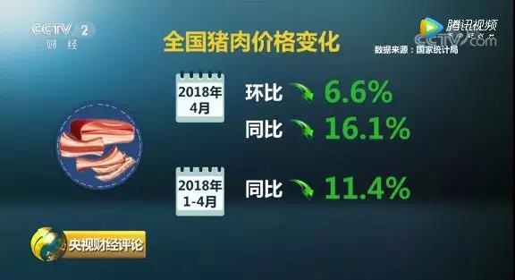 4月份,豬肉價格環(huán)比下跌6.6%,同比下跌16.1%,創(chuàng)5年來新低,生豬價格更是創(chuàng)8年新低;1到4月份,同比下跌11.4%。