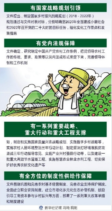 ——有黨內(nèi)法規(guī)保障。文件確定,研究制定中國共產(chǎn)黨農(nóng)村工作條例,把黨領(lǐng)導(dǎo)農(nóng)村工作的傳統(tǒng)、要求、政策等以黨內(nèi)法規(guī)形式確定下來,完善領(lǐng)導(dǎo)體制和工作機(jī)制。
