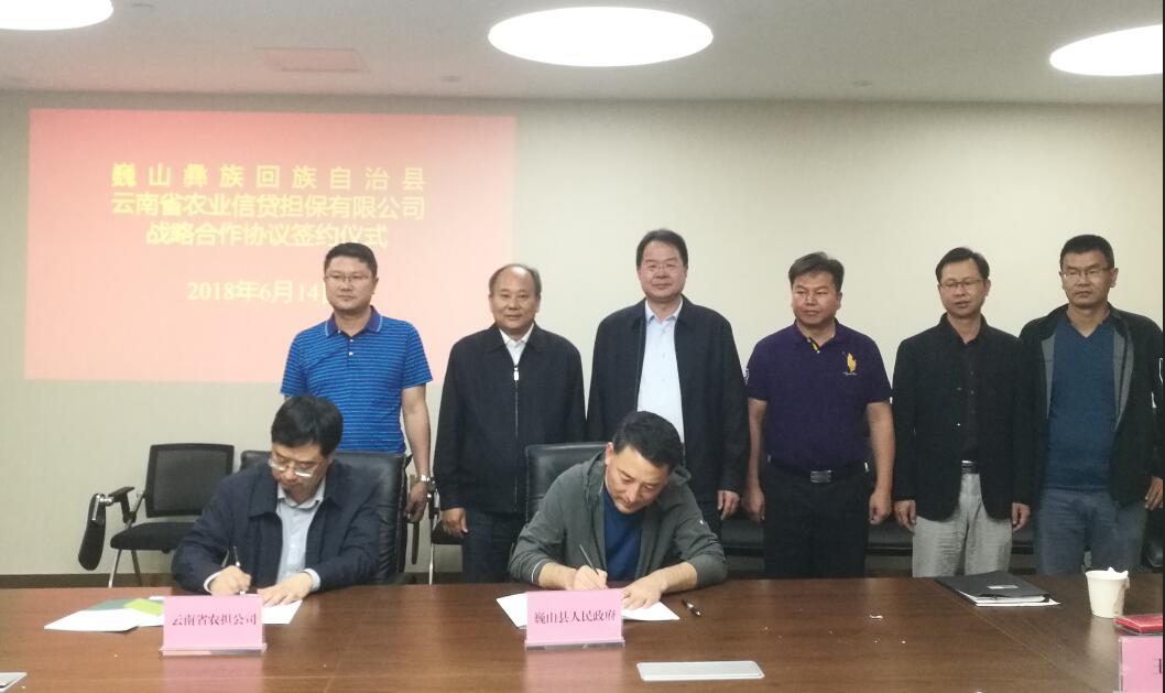 6月14日上午,公司與巍山彝族回族自治縣簽訂了戰(zhàn)略合作協(xié)議。巍山縣縣委副書記、縣長(zhǎng)王利偉率縣財(cái)政局、農(nóng)業(yè)局及巍山縣農(nóng)村商業(yè)銀行與省農(nóng)擔(dān)公司進(jìn)行座談,省農(nóng)擔(dān)公司郭影董事長(zhǎng)、杜開波總經(jīng)理參加會(huì)議,雙方就共同推進(jìn)巍山縣農(nóng)擔(dān)工作深入交換意見(jiàn)。
