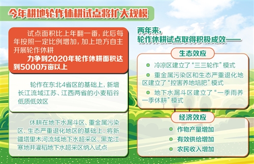在2月23日的農(nóng)業(yè)部新聞發(fā)布會上,農(nóng)業(yè)部種植業(yè)司司長曾衍德表示,今年我國耕地輪作休耕試點(diǎn)將擴(kuò)大規(guī)模,試點(diǎn)面積比上年翻一番,此后每年按照一定比例增加,加上地方自主開展輪作休耕,力爭到2020年輪作休耕面積達(dá)到5000萬畝以上。同時,還將實(shí)現(xiàn)區(qū)域拓展。輪作在東北四省區(qū)的基礎(chǔ)上,新增長江流域江蘇、江西兩省的小麥稻谷低質(zhì)低效區(qū);休耕在地下水漏斗區(qū)、重金屬污染區(qū)、生態(tài)嚴(yán)重退化地區(qū)的基礎(chǔ)上,將新疆塔里木河流域地下水超采區(qū)、黑龍江寒地井灌稻地下水超采區(qū)納入試點(diǎn)范圍。
