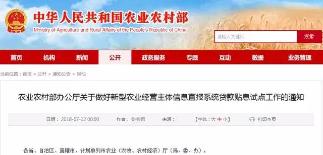 為加快推進(jìn)新型農(nóng)業(yè)經(jīng)營主體信息直報(bào)系統(tǒng)(以下簡稱直報(bào)系統(tǒng))應(yīng)用實(shí)施,幫助緩解新型農(nóng)業(yè)經(jīng)營主體貸款難、貸款貴問題,我部將以直報(bào)系統(tǒng)為載體開展貸款貼息試點(diǎn)?,F(xiàn)將有關(guān)事宜通知如下。