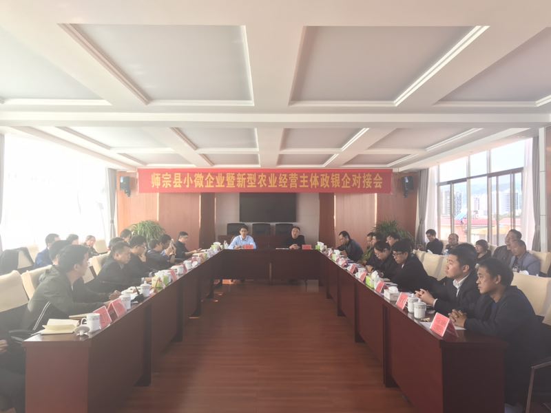 10月18日,曲靖辦事處受邀參加師宗縣新型農(nóng)業(yè)經(jīng)營主體暨小微企業(yè)金融工作服務(wù)推進會。會議由師宗縣人民銀行行長岳濤主持,參會人員包括師宗縣副縣長張硯昆、曲靖市人民銀行中心支行副行長李琰、師宗縣財政局、發(fā)改局、農(nóng)業(yè)局、林業(yè)局、工信局、招商局等職能部門領(lǐng)導(dǎo)、師宗縣各金融機構(gòu)負(fù)責(zé)人以及當(dāng)?shù)匦滦徒?jīng)營主體代表。會議上,曲靖辦事處業(yè)務(wù)員陳俊對公司成立背景、政策、業(yè)務(wù)開展情況及師宗地區(qū)的業(yè)務(wù)開展情況、合作流程等相關(guān)事宜進行了介紹。各銀行負(fù)責(zé)人對銀行貸款政策、存貸規(guī)模、帶動扶貧等情況進行了介紹,當(dāng)?shù)匦∥⑵髽I(yè)代表就經(jīng)營情況進行了介紹,并提出了企業(yè)融資過程中遇到的難題。隨后政、銀、擔(dān)、企就如何解決小微企業(yè)融資問題進行探討,并要求各部門就相關(guān)政策及會議要求落實、落實、再落實!最后,張硯昆副縣長以及曲靖市人民銀行副行長李琰對本次金融推薦會給予了肯定并作出指示:各政府部門及各金融機構(gòu)要充分認(rèn)識小微企業(yè)的重要性,支持小微企業(yè)是全方位的,不單純的是金融支持,各部門要加大力度支持小微企業(yè)的發(fā)展壯大。本次會議提升了公司在師宗縣的知名度,為公司在師宗縣的業(yè)務(wù)擴展打下了堅實的基礎(chǔ)。