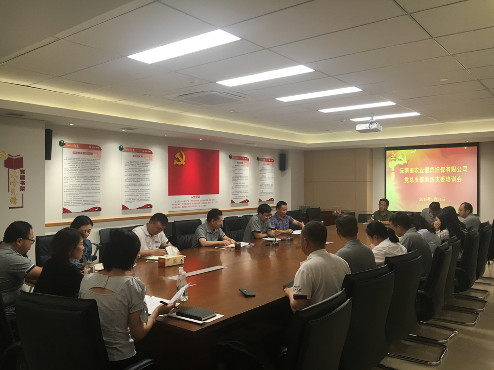 5月24日,云南省農業(yè)信貸擔保有限公司黨總支部召開新選支部委員培訓會,公司黨總支部書記、董事長郭影同志主持會議,公司新選支部委員參加了培訓。