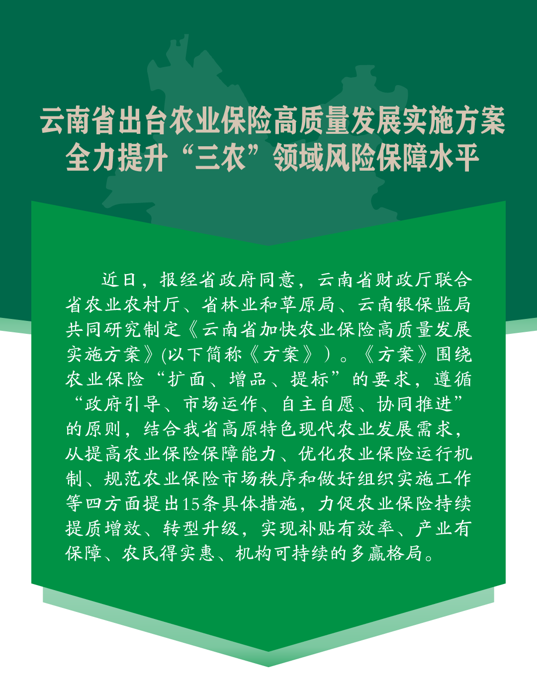云南省出臺農(nóng)業(yè)保險高質量發(fā)展實施方案 全力提升“三農(nóng)”領域風險保障水平