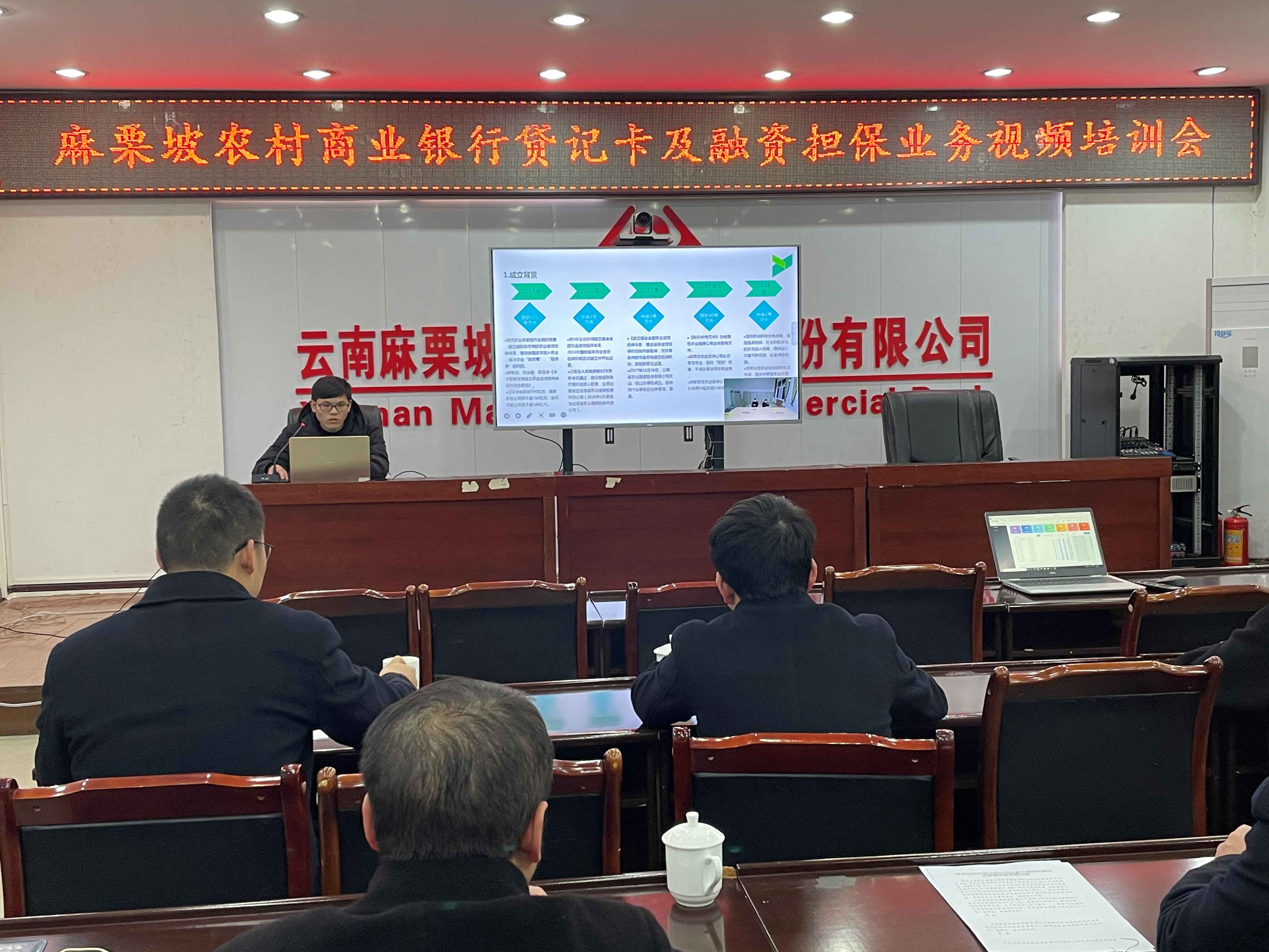 為持續(xù)深化務實合作,推動實現(xiàn)共贏共擔,2021年1月28日,文山辦事處項目經(jīng)理李立興、張曉倩、馮群淇一行參加了麻栗坡農(nóng)村商業(yè)銀行融資擔保業(yè)務視頻培訓會,會議由農(nóng)商行信貸部總經(jīng)理陳路平主持,文山辦事處項目經(jīng)理李立興主講,各基層行長及業(yè)務骨干參加。