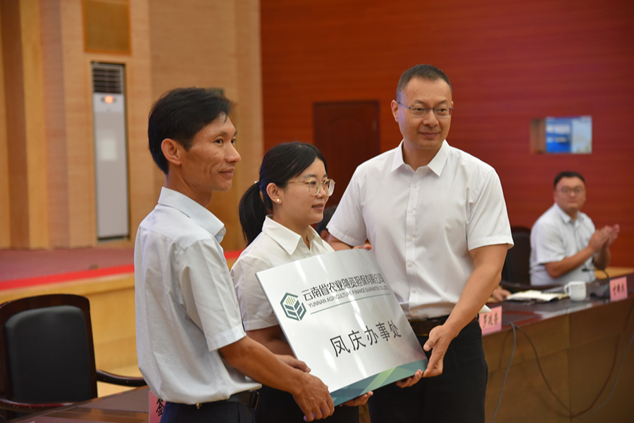 為進(jìn)一步助推鳳慶縣農(nóng)業(yè)產(chǎn)業(yè)振興,發(fā)揮農(nóng)擔(dān)政策性擔(dān)保作用,9月15日,云南省農(nóng)擔(dān)公司鳳慶辦事處授牌儀式在鳳慶縣會(huì)展中心報(bào)告廳順利舉行。公司總經(jīng)理李世偉、戰(zhàn)略發(fā)展部經(jīng)理蔡菲、業(yè)務(wù)發(fā)展部副經(jīng)理寸明杰,臨滄市人民政府金融辦公室主任羅廷榮、鳳慶縣委常委、縣人民政府常務(wù)副縣長(zhǎng)陳正華、臨滄市農(nóng)業(yè)農(nóng)村局副局長(zhǎng)翟國(guó)軍等領(lǐng)導(dǎo)出席會(huì)議。鳳慶縣各政府部門及鳳慶縣13個(gè)鄉(xiāng)(鎮(zhèn))人民政府分管農(nóng)業(yè)農(nóng)村工作的領(lǐng)導(dǎo),縣人行及各金融機(jī)構(gòu)主要負(fù)責(zé)人參加會(huì)議。