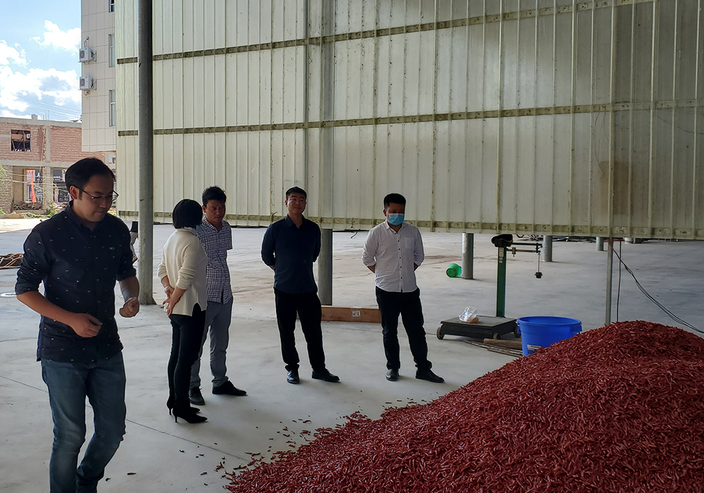 為深入了解硯山縣稼依鎮(zhèn)“辣椒產(chǎn)業(yè)”發(fā)展情況,全面推進(jìn)鄉(xiāng)村振興,加快農(nóng)業(yè)農(nóng)村現(xiàn)代化,2021年11月4日,文山辦事處業(yè)務(wù)主管袁彬攜項目經(jīng)理王忠泉與中國郵政儲蓄銀行文山州分行副行長陳文奎、副行長李洪、小微企業(yè)總經(jīng)理黃繁兵及相關(guān)信貸人員深入硯山縣稼依鎮(zhèn)實地調(diào)研了解“辣椒產(chǎn)業(yè)”的發(fā)展趨勢,對部分辣椒貿(mào)易大戶及合作社進(jìn)行貸款政策宣導(dǎo)。