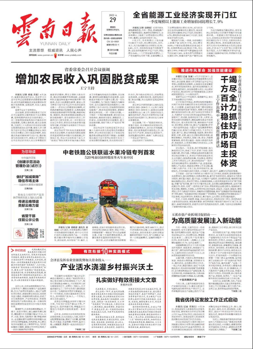 《云南日報》頭版推出