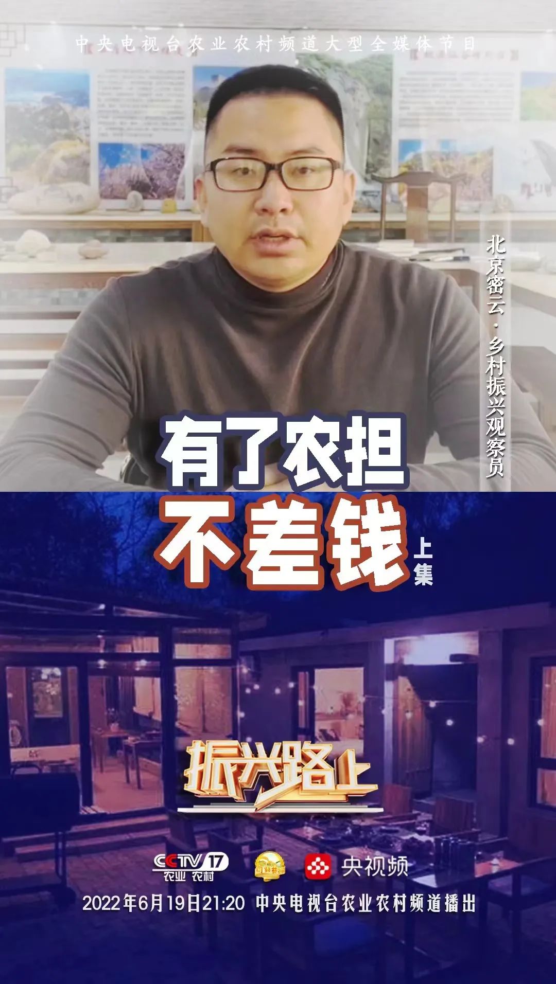 在農(nóng)業(yè)農(nóng)村部計劃財務(wù)司的指導(dǎo)下,由中央廣播電視總臺農(nóng)業(yè)農(nóng)村頻道(CCTV-17)大型全媒體欄目《振興路上》與國家農(nóng)擔公司特別策劃《有了農(nóng)擔不差錢》(上下集),歷經(jīng)4個月精心策劃、跨越八省實地拍攝、后期剪輯與制作工作,現(xiàn)將分別于6月19日與6月26日21:20在CCTV-17農(nóng)業(yè)農(nóng)村頻道與央視頻同步播出,屆時將讓全國觀眾認識不一樣的農(nóng)擔人、感受“兩腳泥、曬黑臉、睡地板”的農(nóng)擔精神。