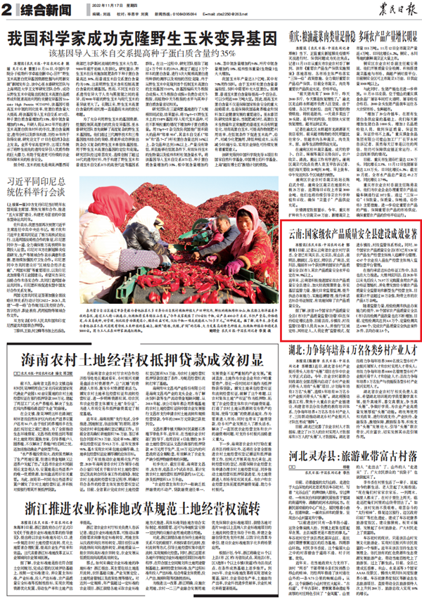 日前,據(jù)云南省農(nóng)業(yè)農(nóng)村廳消息,全省已有鳳慶縣、元謀縣、硯山縣、嵩明縣、麒麟?yún)^(qū)、馬龍區(qū)、師宗縣、廣南縣、賓川縣、瑞麗市10個(gè)獲授牌的國(guó)家農(nóng)產(chǎn)品質(zhì)量安全縣(市),其農(nóng)產(chǎn)品質(zhì)量安全水平穩(wěn)定在98.9%以上。