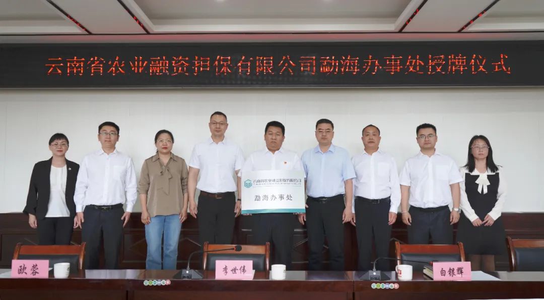 2023年3月21日下午,云南省農(nóng)業(yè)融資擔(dān)保有限公司勐海辦事處授牌儀式在勐??h人民政府舉行。勐??h委常委、常務(wù)副縣長白銀輝、公司總經(jīng)理李世偉、勐??h財政局局長、縣金融辦主任歐蓉、縣財政局副局長、縣金融辦副主任劉潤等領(lǐng)導(dǎo)出席會議??h政府辦、縣發(fā)改局、縣自然資源局、縣農(nóng)業(yè)農(nóng)村局、縣林草局、縣鄉(xiāng)村振興局、縣市場監(jiān)管局、縣11個鄉(xiāng)(鎮(zhèn))人民政府分管領(lǐng)導(dǎo)、縣人民銀行及縣域內(nèi)金融機(jī)構(gòu)主要負(fù)責(zé)人、農(nóng)擔(dān)公司戰(zhàn)略發(fā)展部、業(yè)務(wù)發(fā)展部、西雙版納辦事處參加儀式。