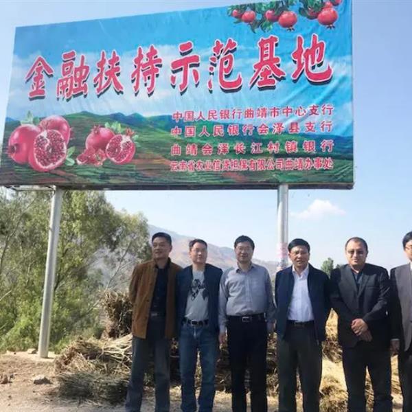 4月12日,農(nóng)擔(dān)公司董事長郭影與曲靖市財(cái)政局、會澤人行、會澤長江村鎮(zhèn)銀行及其他幾家金融機(jī)構(gòu)領(lǐng)導(dǎo)一行到會澤縣娜姑鎮(zhèn)干海子軟籽石榴村進(jìn)行實(shí)地考察調(diào)研。